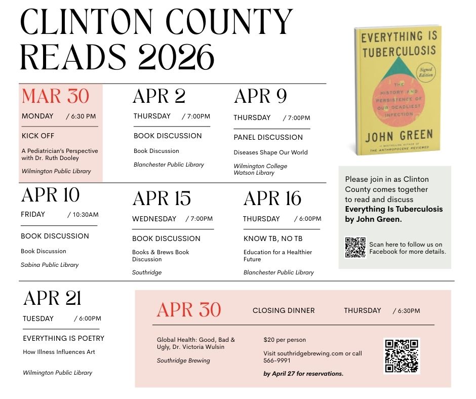 Clinton County Reads has selected John Green’s nonfiction work “Everything Is Tuberculosis: The History and Future of Our Deadliest Infection” for its 20th annual countywide reading program.